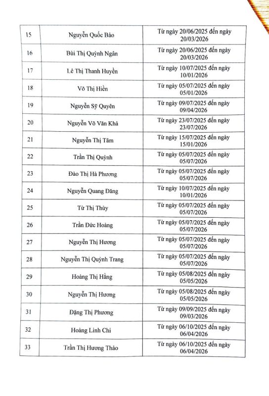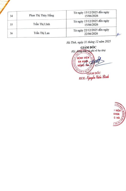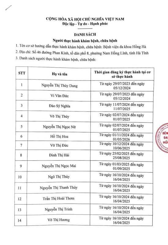 Danh sách người thực hành khám bệnh, chữa bệnh tháng 12 năm 2025